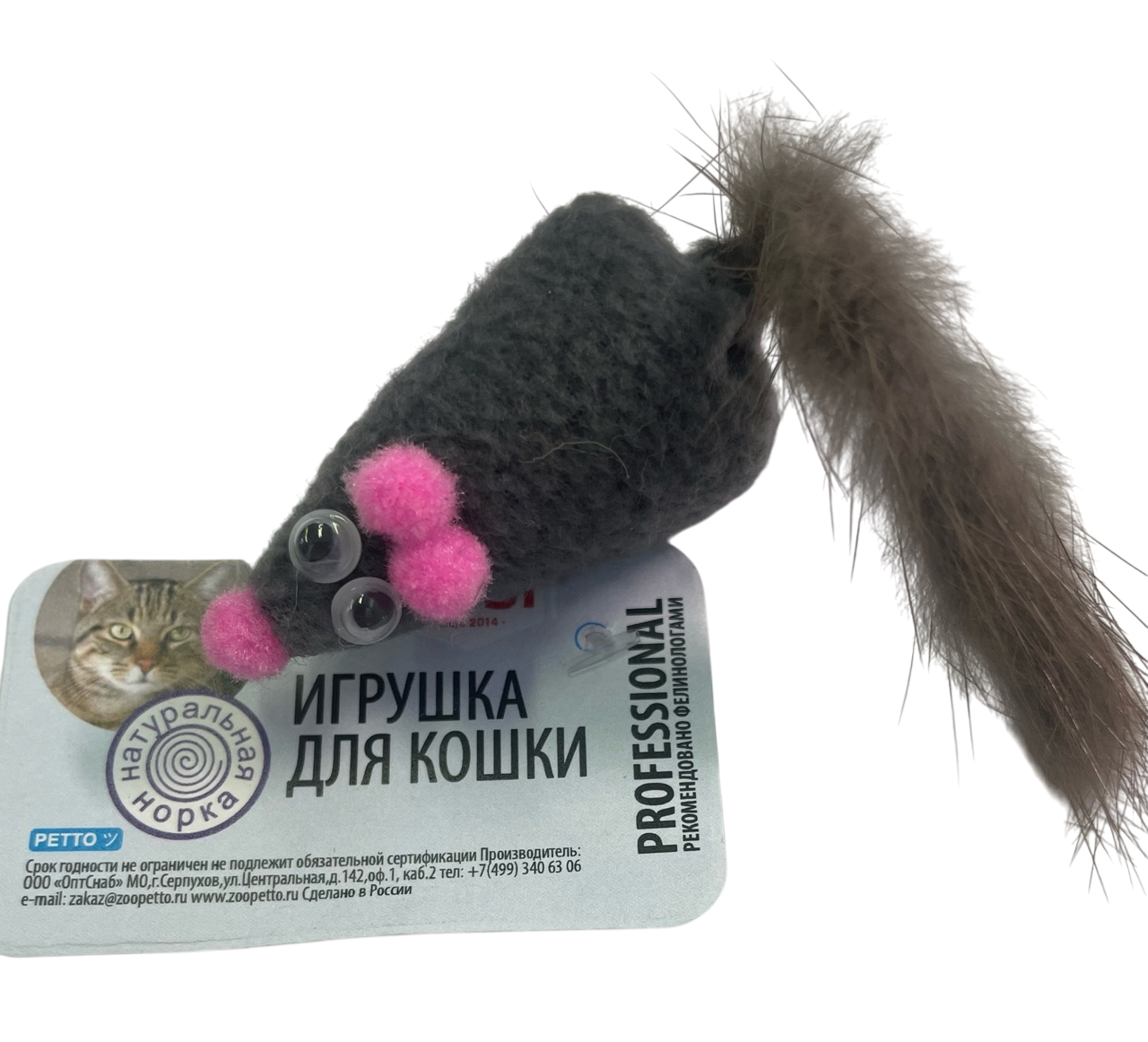 Игрушка для Кошек "Мышь-милаха серая с норковым хвостом" GoSi