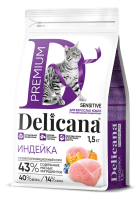 Сухой полнорационный корм Delicana для кошек с чувствительным пищеварением с индейкой